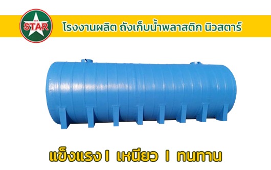 โรงงานผู้ผลิตและจำหน่ายถังเก็บน้ำใต้ดิน-บนดิน ถังบำบัดน้ำเสีย ถังดักไขมัน ถังแช่น้ำแข็ง ถังไฟเบอร์กลาส ภายใต้ตราสินค้า NEW STAR ถังเก็บน้ำนิวสตาร์ทุกแบบผ่านขั้นตอนการผลิตด้วยวิธีหลอมขึ้นรูปพลาสติก Rotomolding มาตรฐาน มอก. 1379-2551 เนื้อพลาสติกเหนียวทนต่อแรงดึงคงทนต่อแรงดันและทนแรงกระแทกได้ดี ทนแดดและแสงอุลตร้าไวโอเลทUV ไม่เปราะแตกง่าย อายุการใช้งานยาวนานคุ้มค่า น้ำหนักเบาเคลื่อนย้ายง่าย มีหลากหลายแบบให้เลือกใช้งาน รับประกันตลอดอายุถังเก็บน้ำ PE ยาวนานถึง 20 ปี